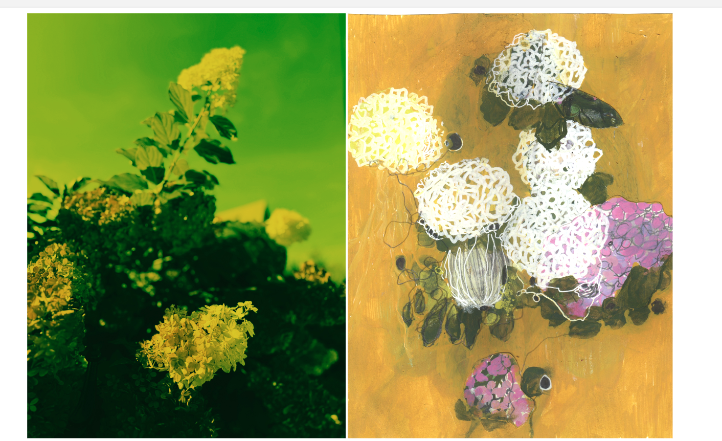 About 10 years ago, I began incorporating a plein air & still life drawing practice alongside my collage work, with a deep focus on the study of flowers. Rich in color, texture, scent, and often otherworldly in shape, flowers share with us both stories of life in the deepest parts of Earth through their roots, and mysteries of the cosmos above in their petals & leaves. Flowers are now an essential part of my visual vocabulary, acting as time keepers, myth makers, historical markers, and beacons from the future.